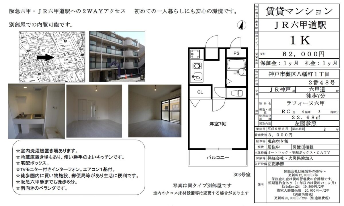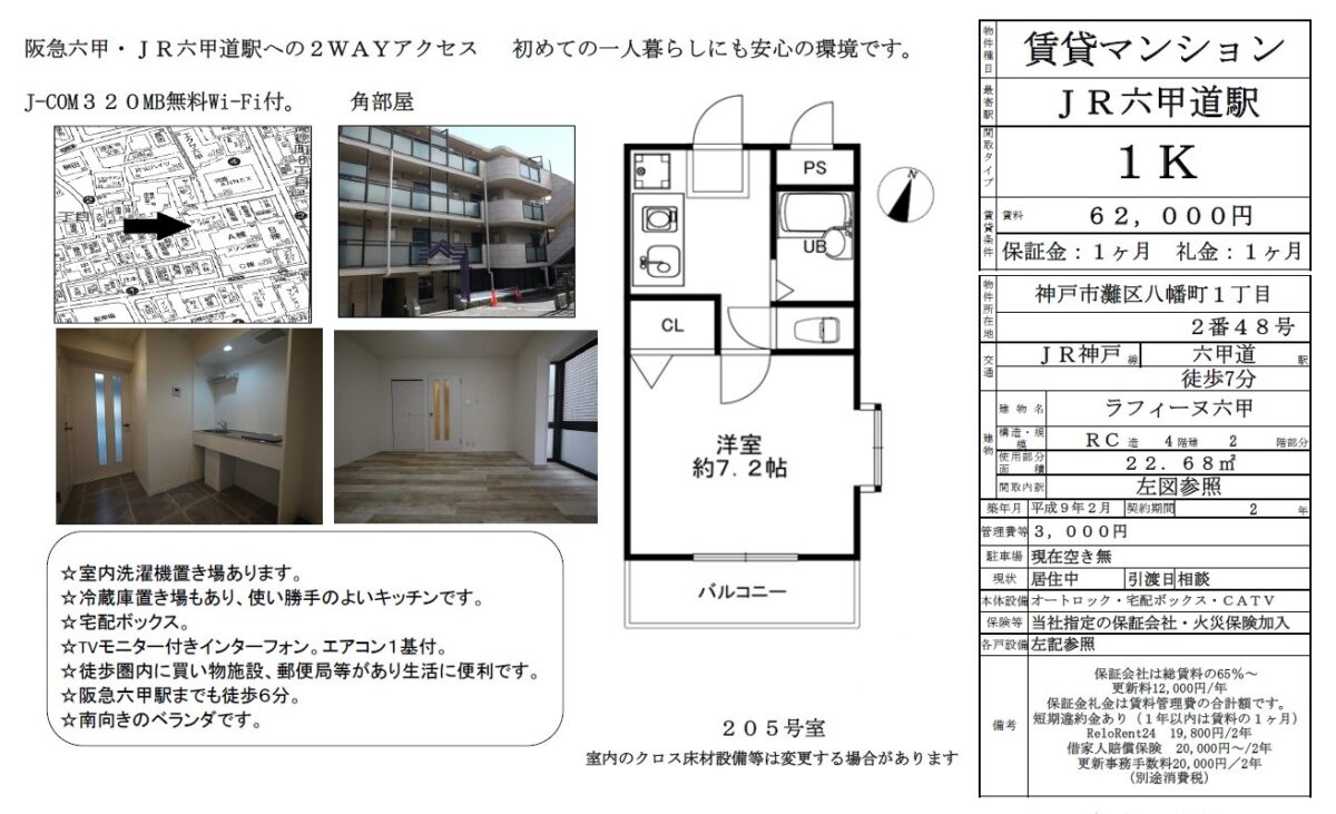 阪急神戸本線 六甲駅 徒歩3分