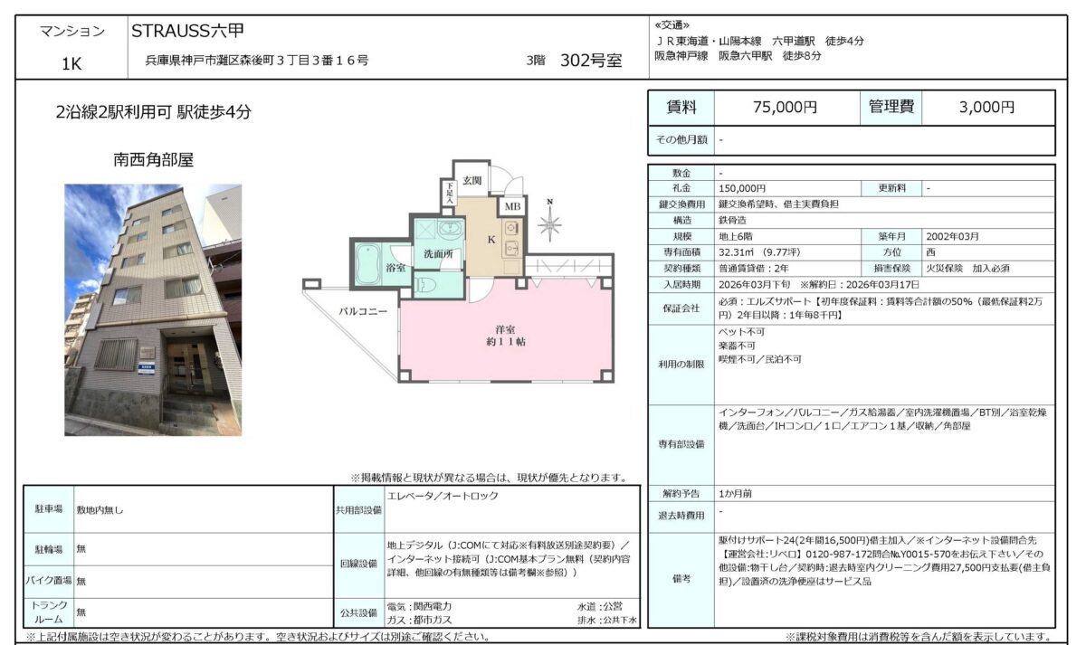 阪急神戸本線 六甲駅 徒歩8分
