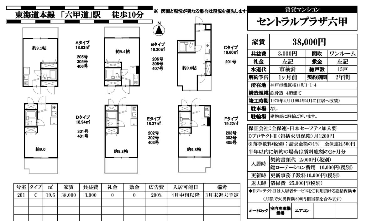 号室 間取り図 所在階 賃料 管理費 間取り 面積 敷/礼 詳細 候補