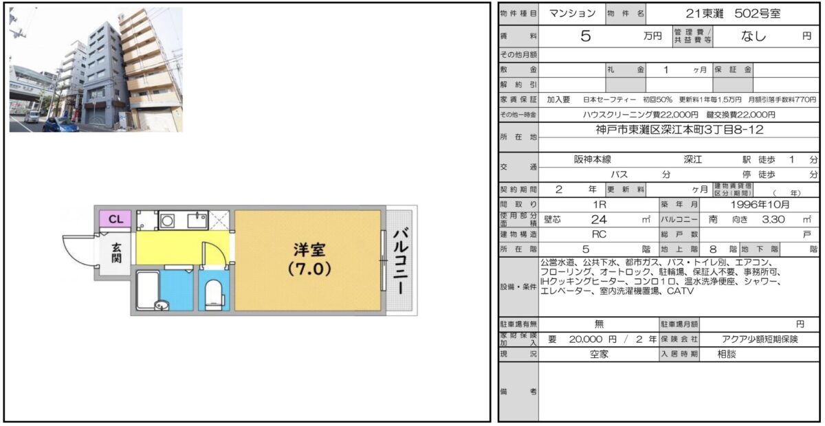 5階 | 50,000円 | --- | 1R | 24㎡ | - / 1ヶ月 | 詳細 |