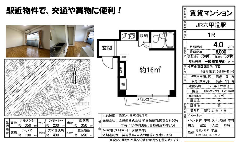 徒歩6分で16系統「JR六甲道」→「神大国際文化学研究科前」下車(バス乗車10分)