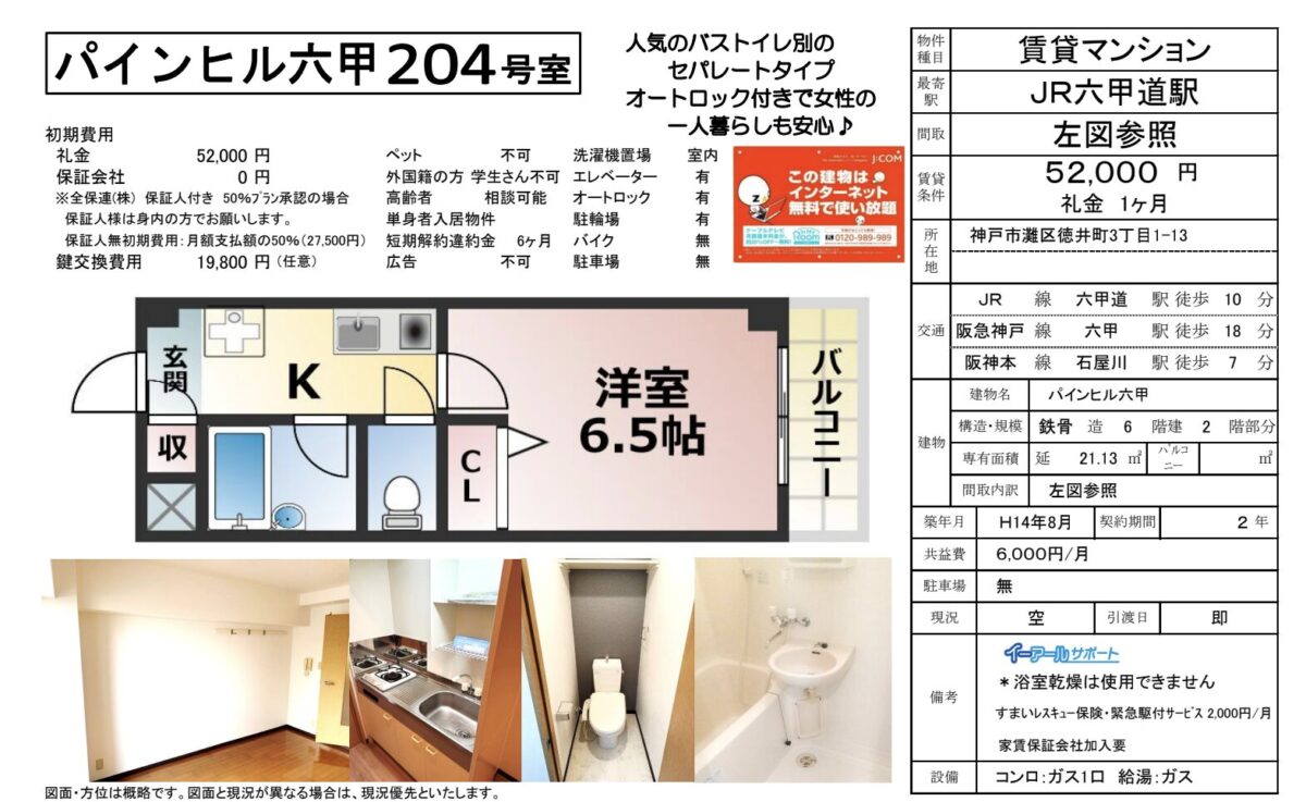 2階 | 52,000円 | 6,000円 | 1R | 21.13㎡ | - / 1ヶ月 | 詳細 |