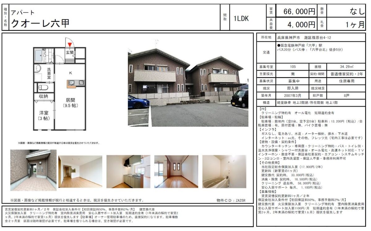 1階 66,000 4,000 1LDK 34.29㎡ - / 66,000円 詳細
