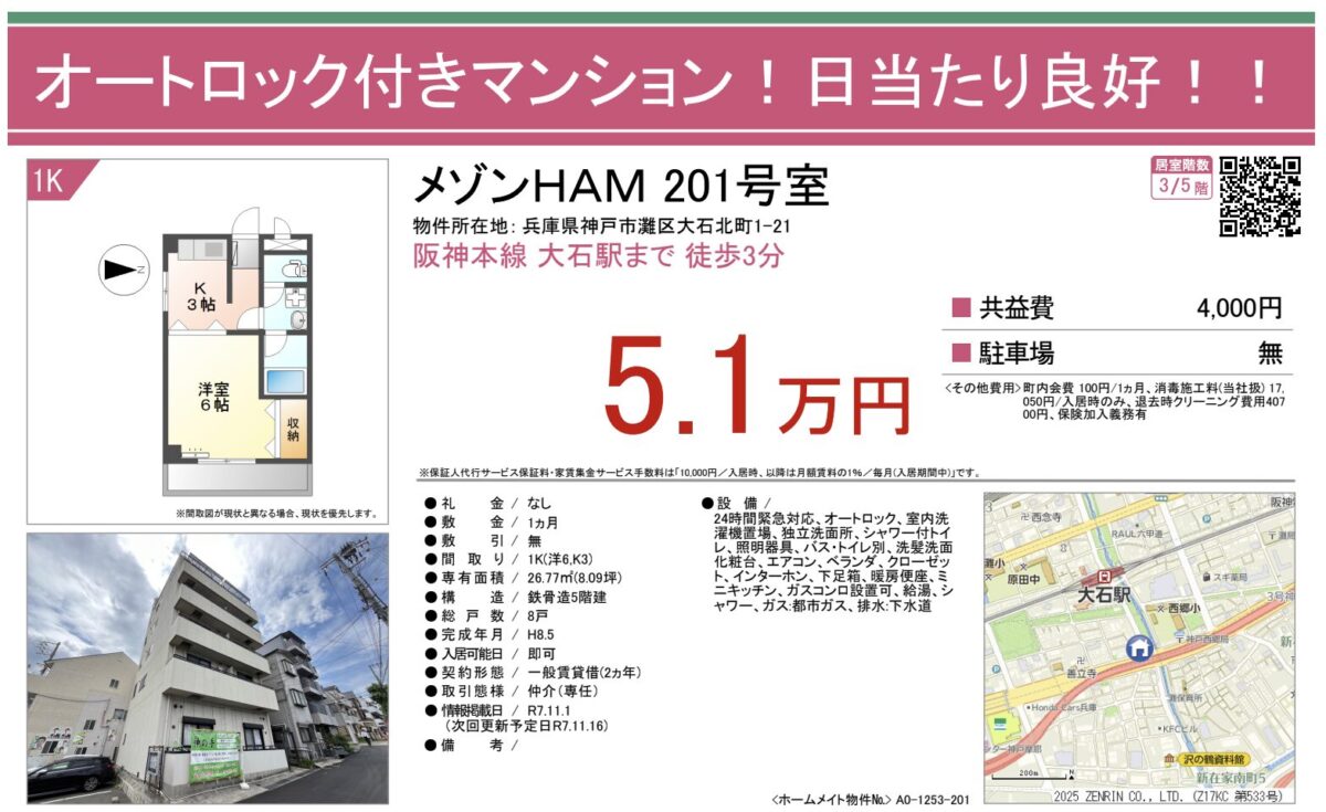 2階 | 51,000円 | 4,000円 | 1K | 26.77㎡ | 51,000円 / - | 詳細 |