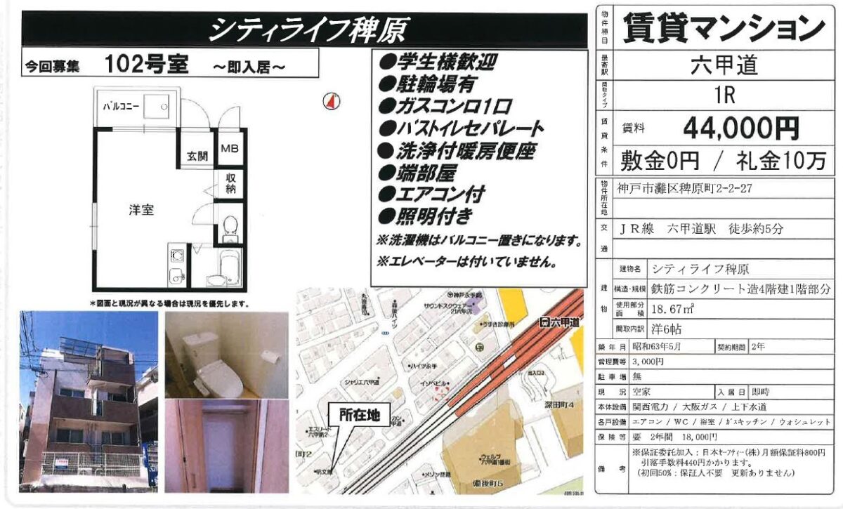 阪急神戸本線 六甲駅 徒歩13分