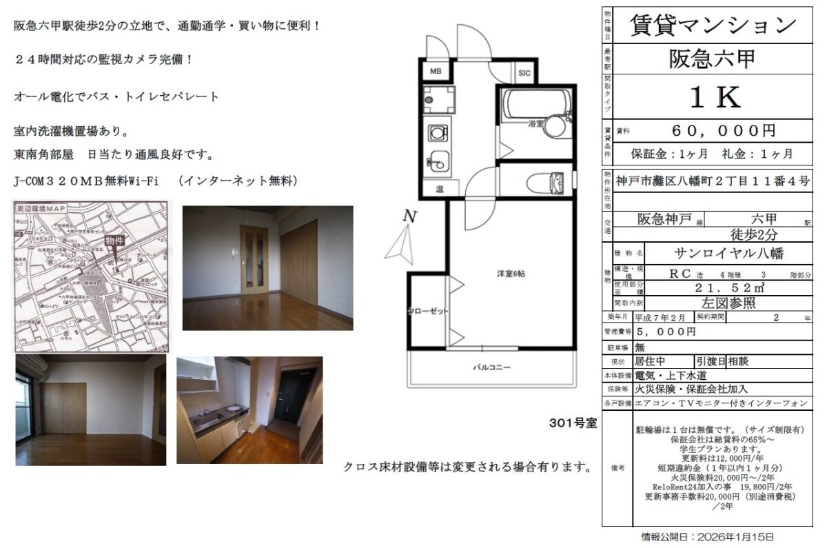 リアライズ六甲Ⅰ(旧ジュネス六甲1) 301号室
