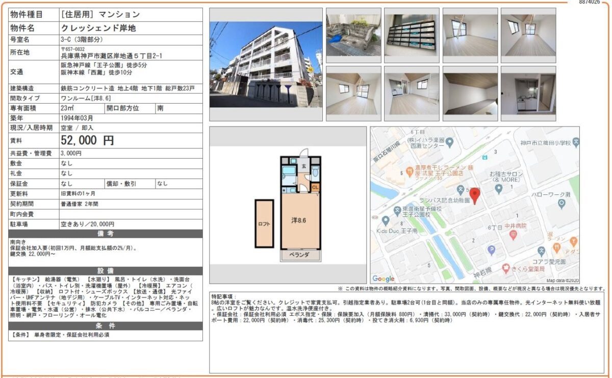 徒歩12分で阪神「西灘駅」→阪神「深江駅」下車 徒歩18分