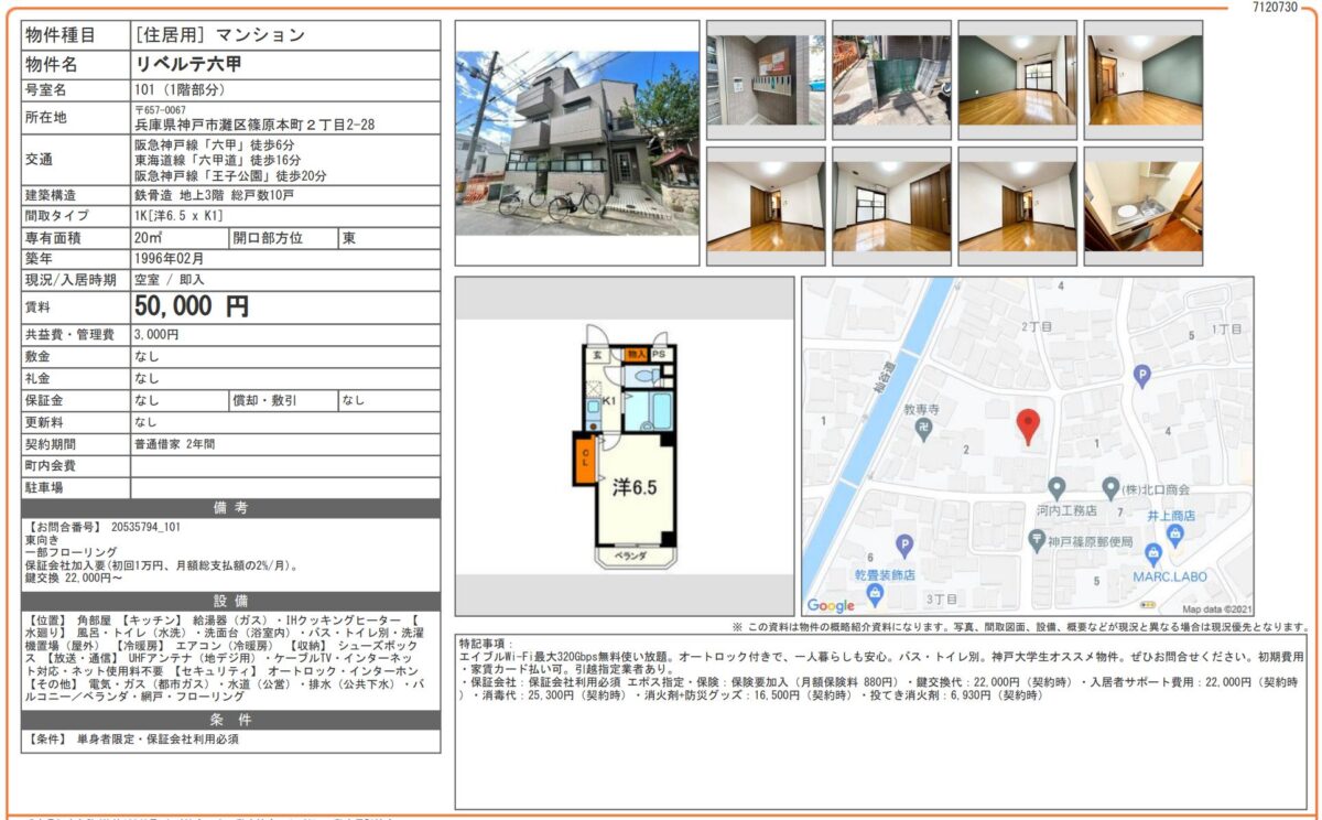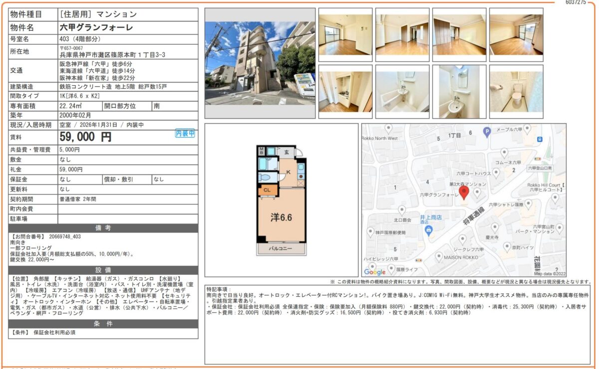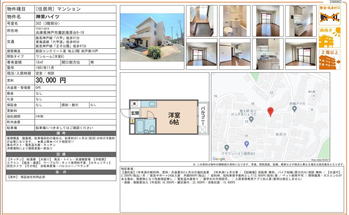 間取り図 所在階 号室 賃料 管理費 間取り 面積 敷/礼 詳細 候補