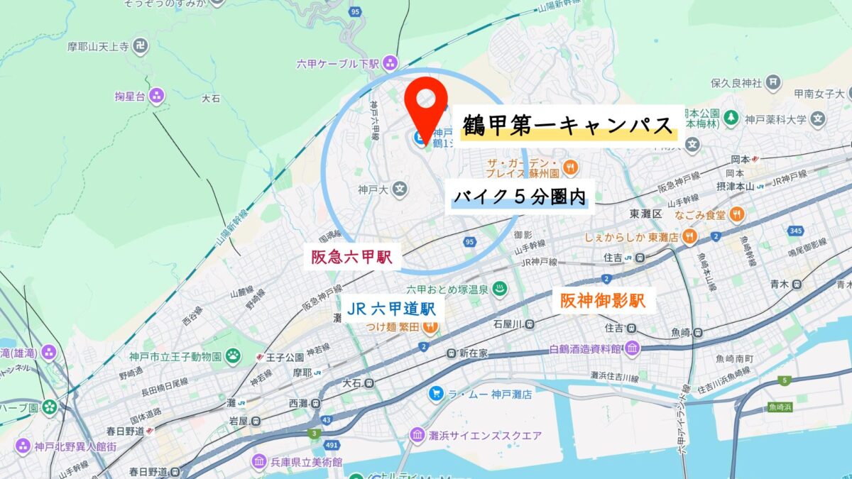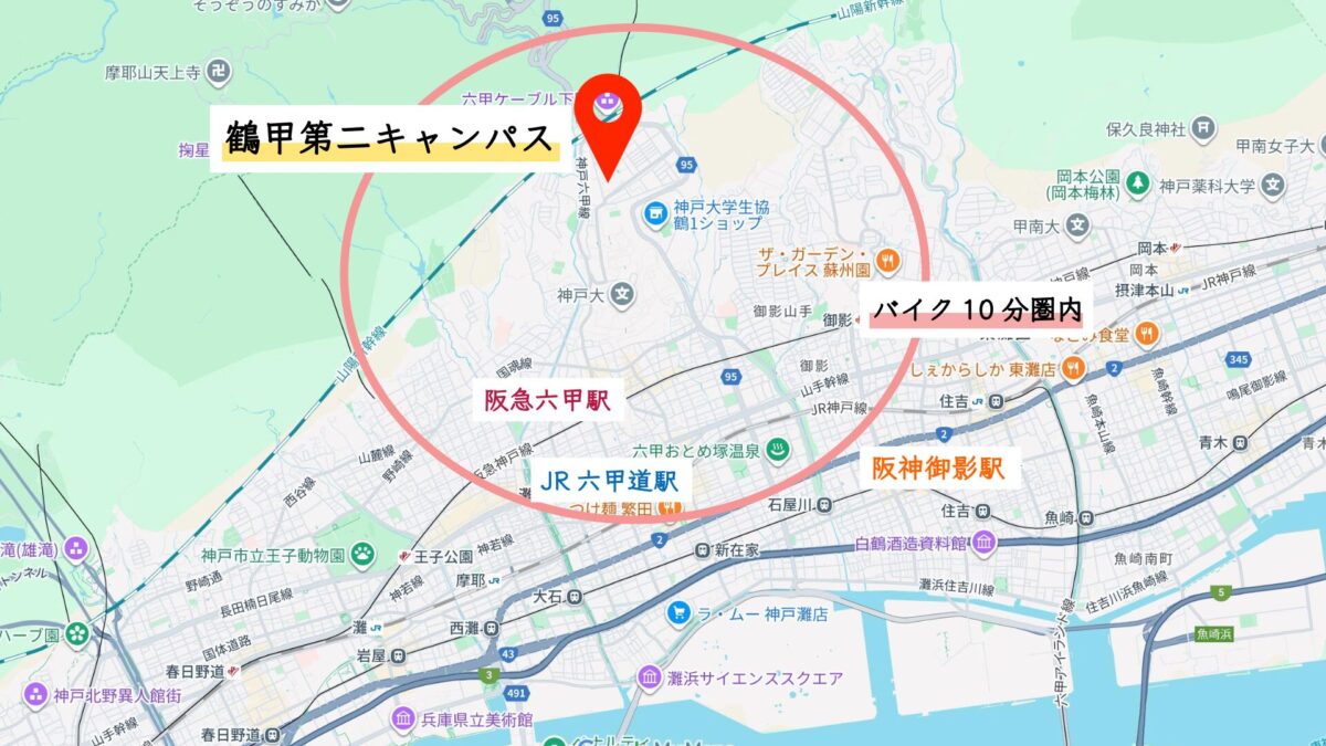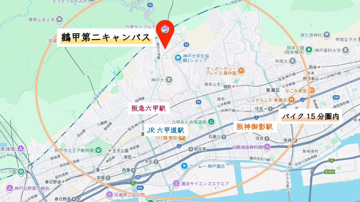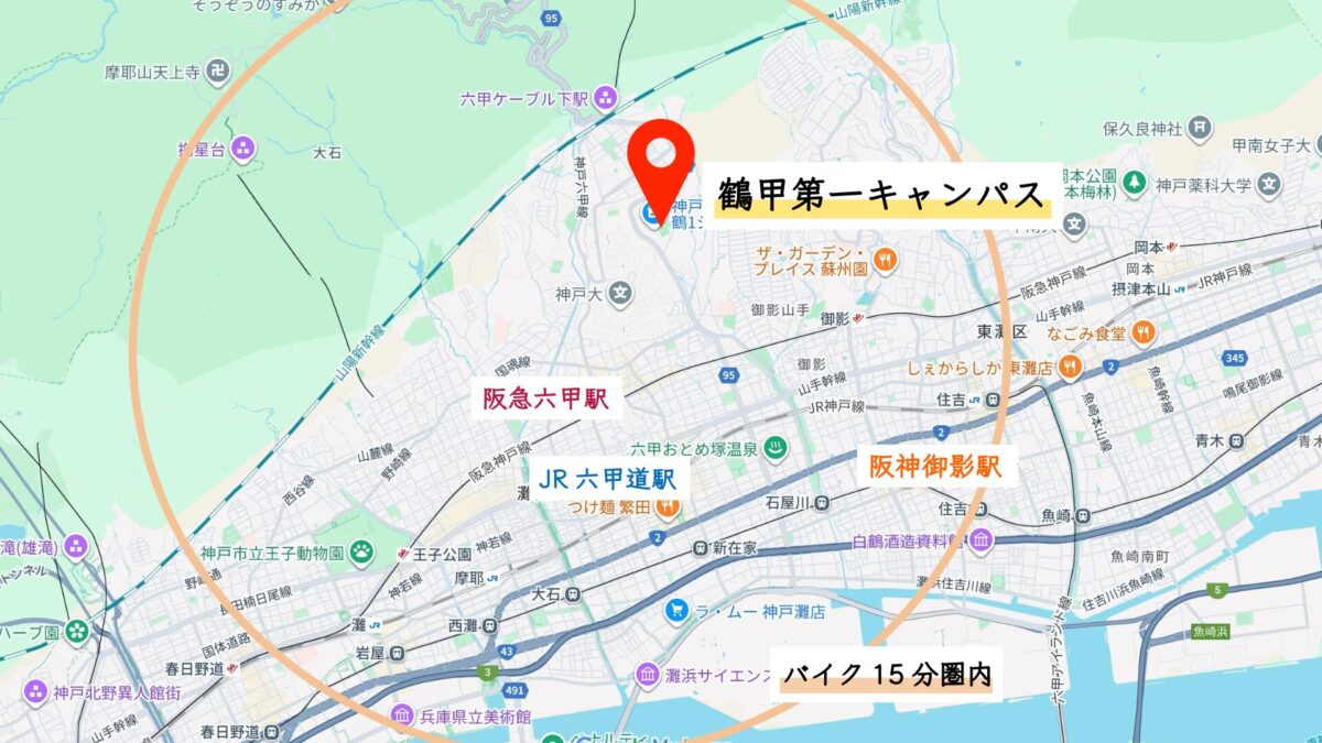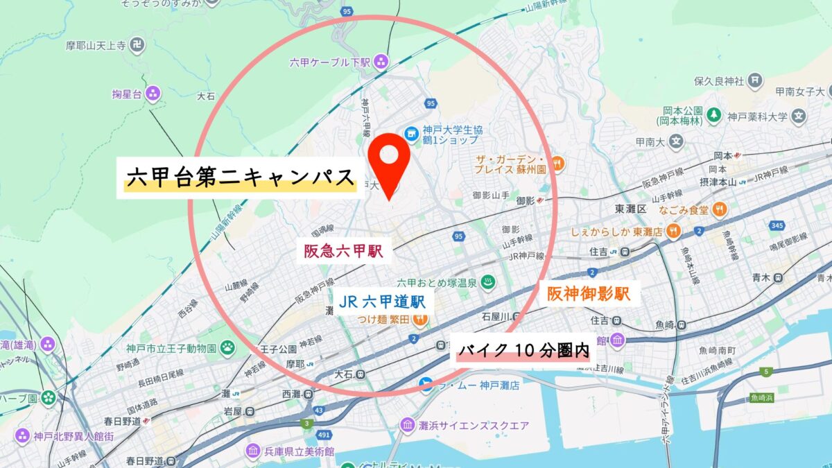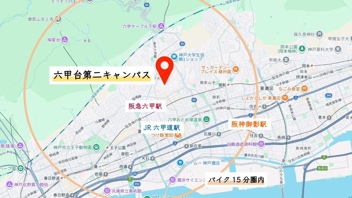 神戸大学までバイク圏内マップ