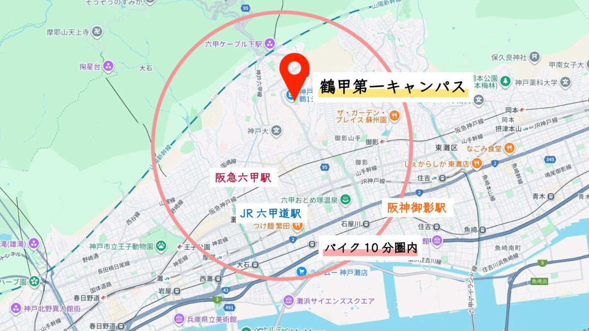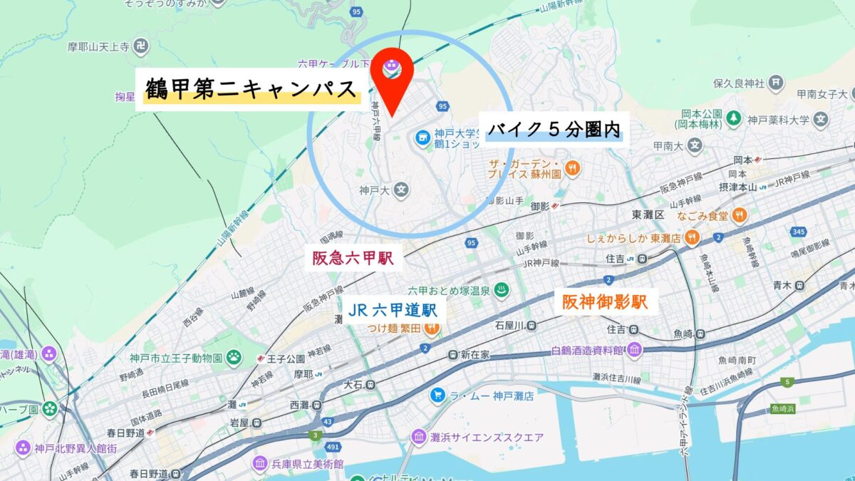 神戸大学 鶴甲第1キャンパスまでバイク5分圏内の賃貸物件特集