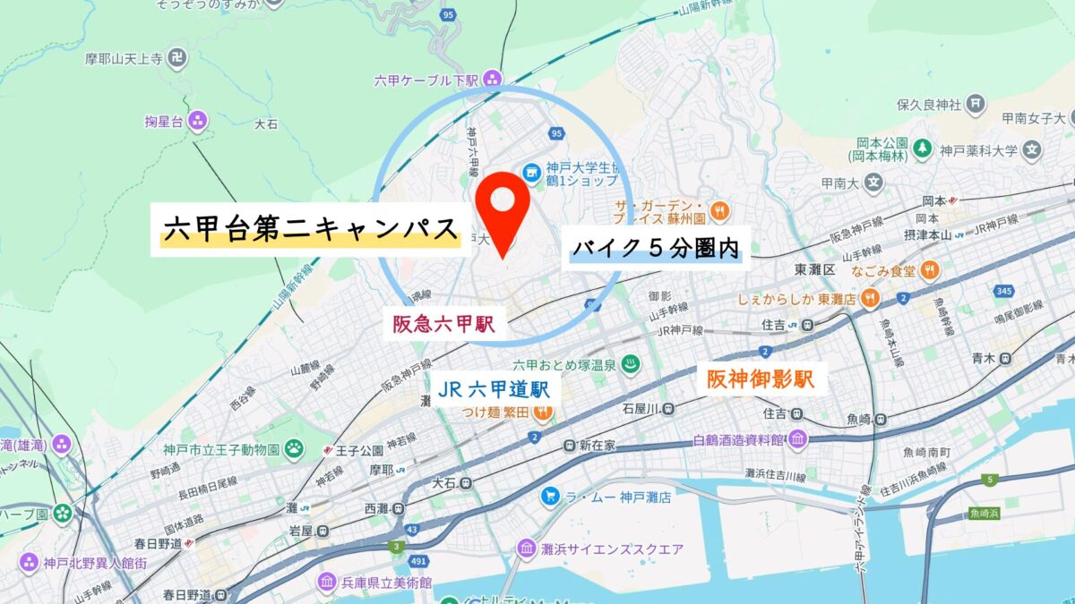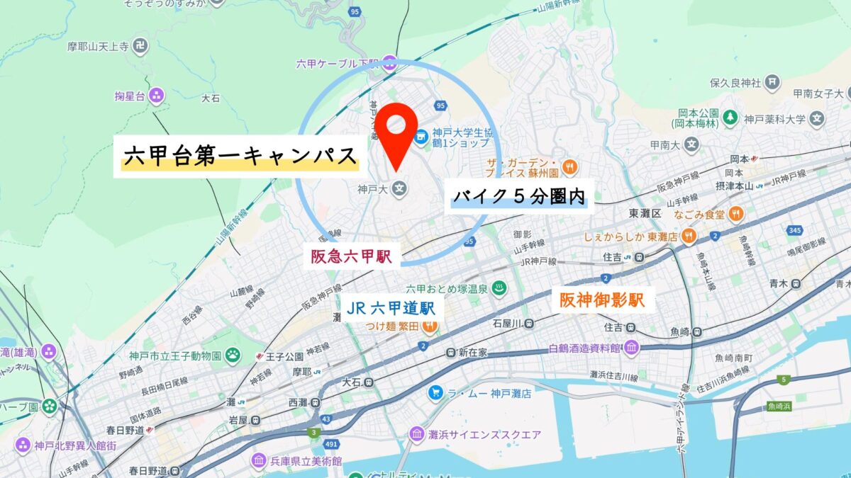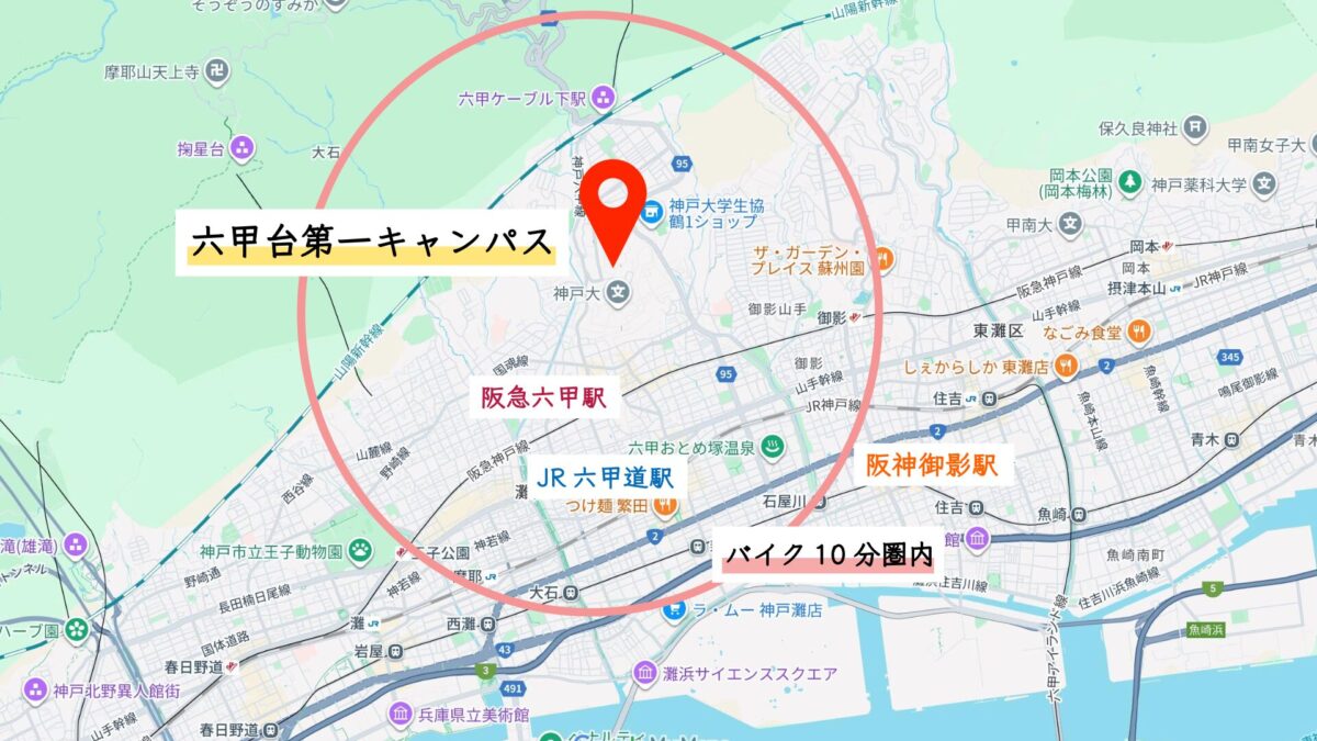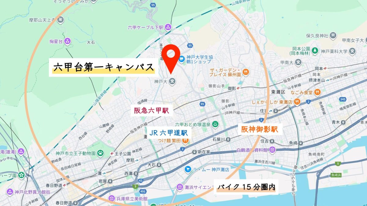 神戸大学 六甲台第1キャンパスまでバイク15分圏内の賃貸物件特集