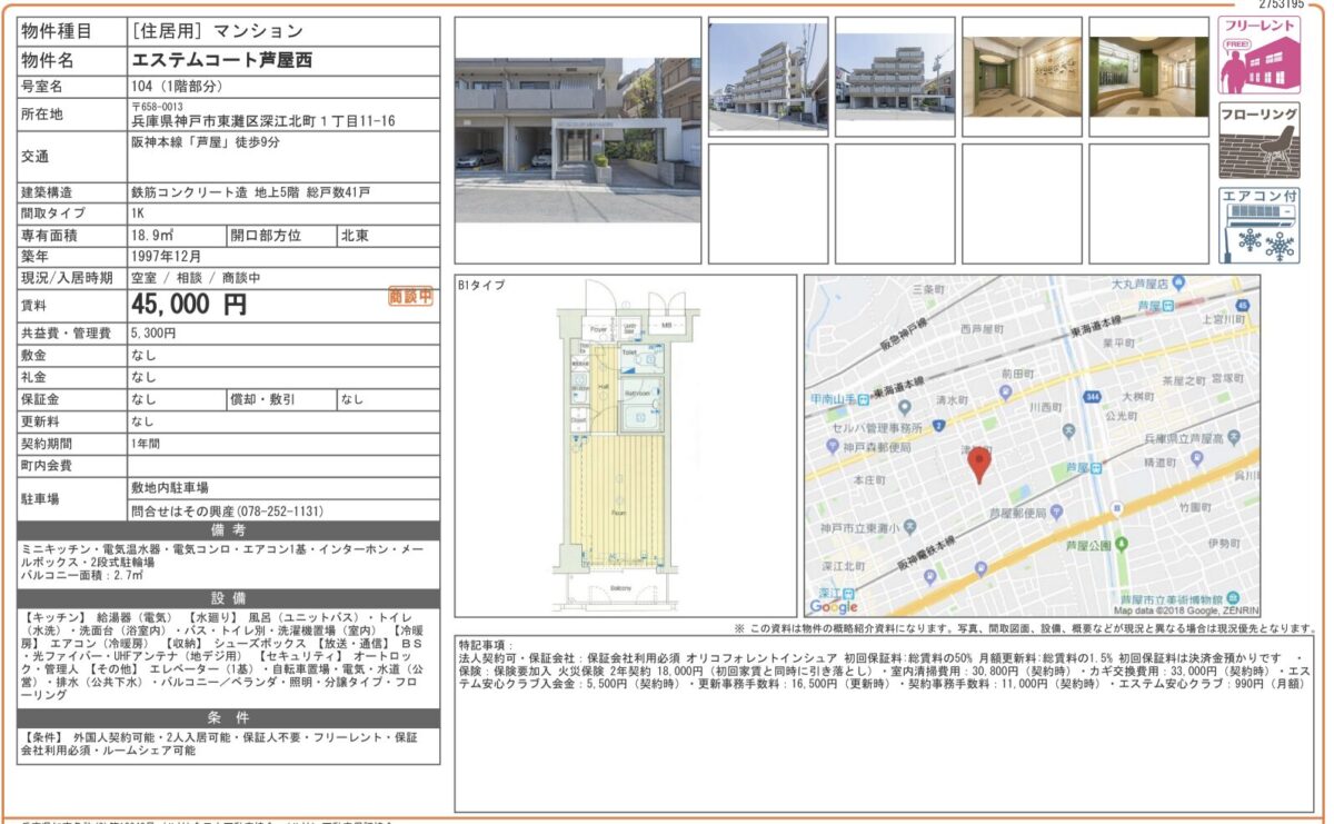 1階 104 4.5万円 5,300円 1K 18.9㎡ - /