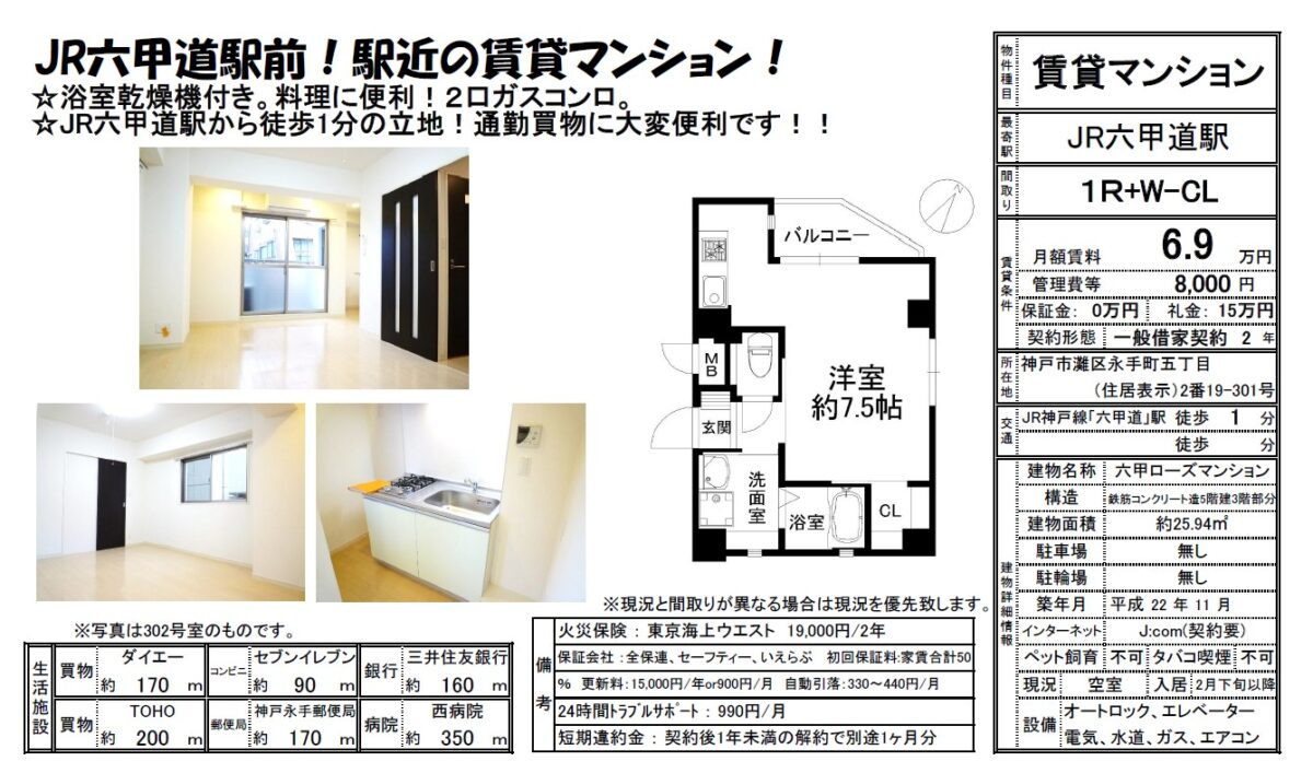 JR神戸線 六甲道駅から徒歩6分
